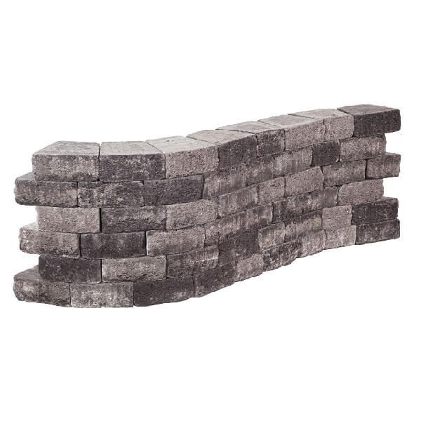 Stapelbaar trapezium getrommeld muurelement met 2 ruwe zijden in diverse kleuren. Leverbaar in 1 formaat. Zeer geschikt voor tuinmuren en het maken van rondingen in de tuin.